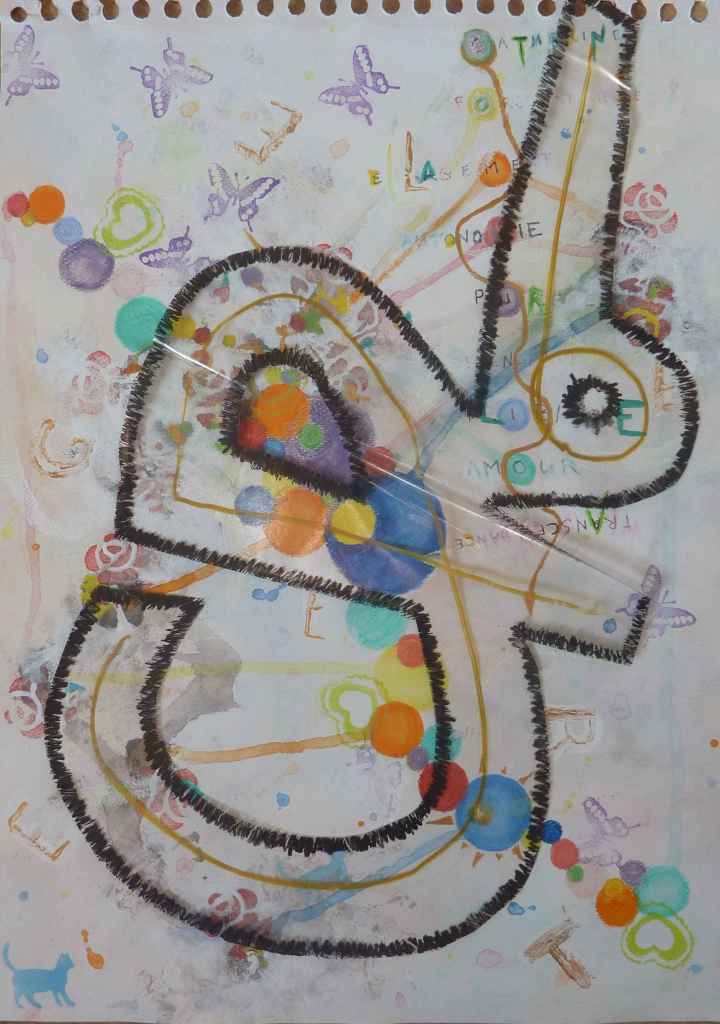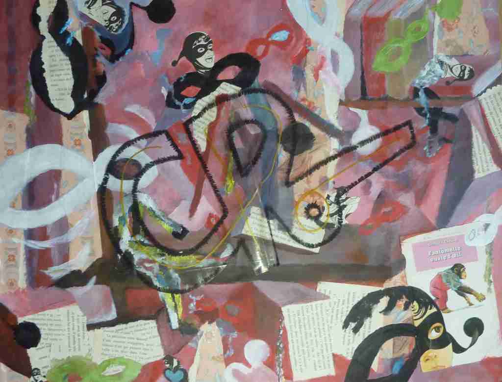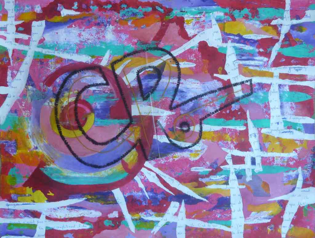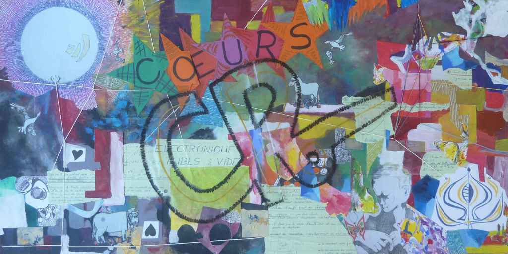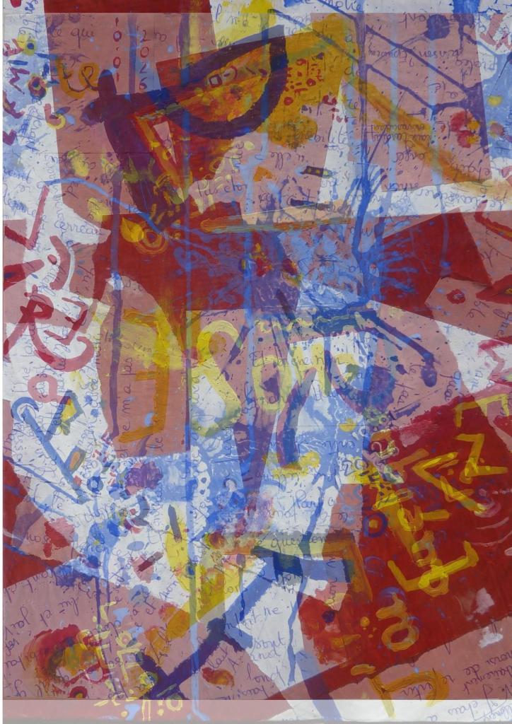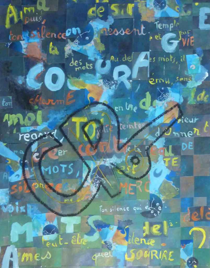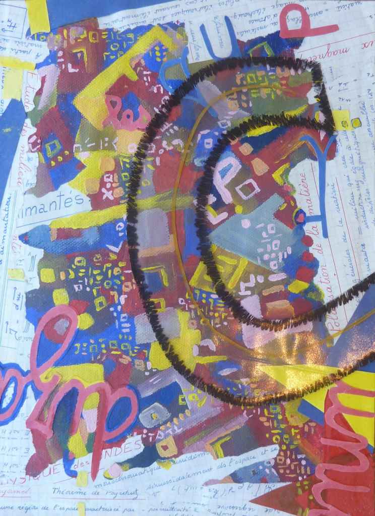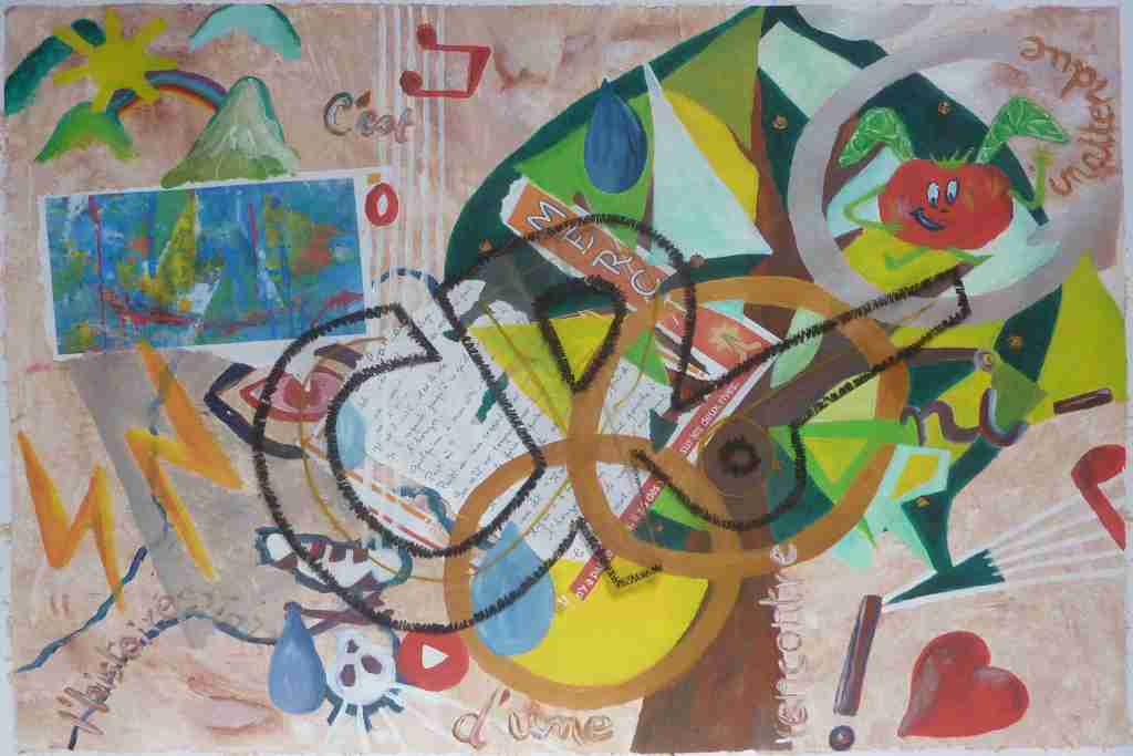 Art COlorieZÊtreRegardObscurClairPeinture acrylique / collages sur papier, format 50 x 65 cm