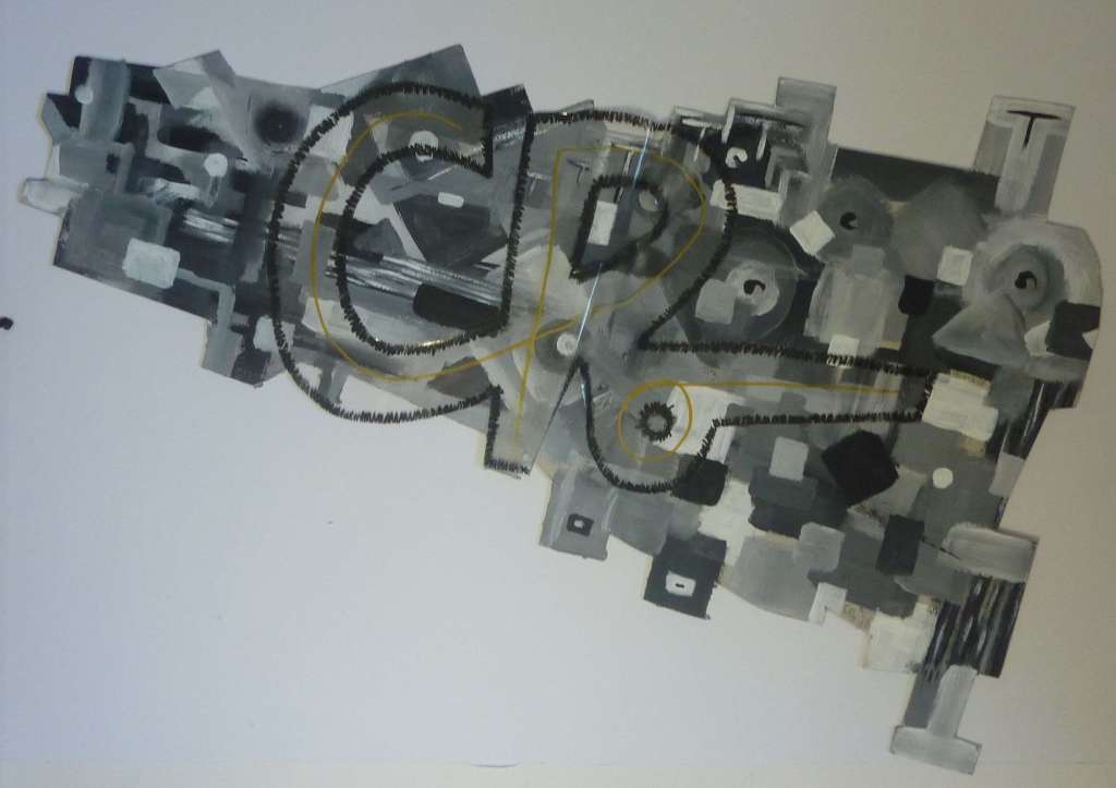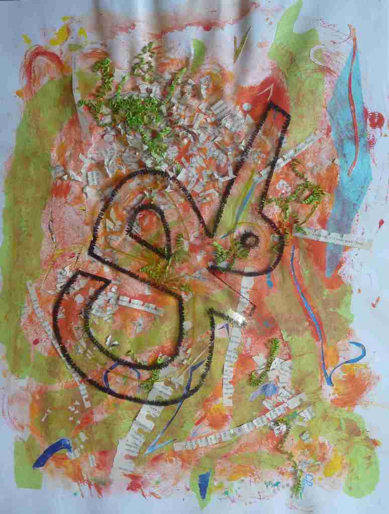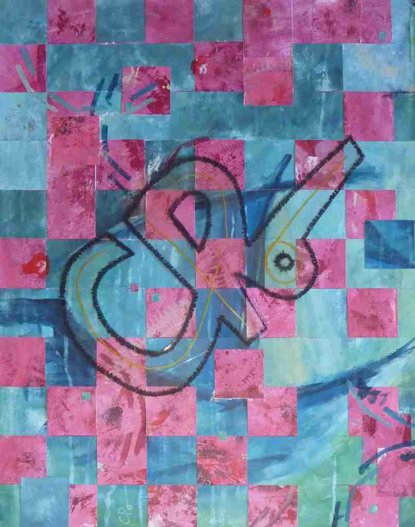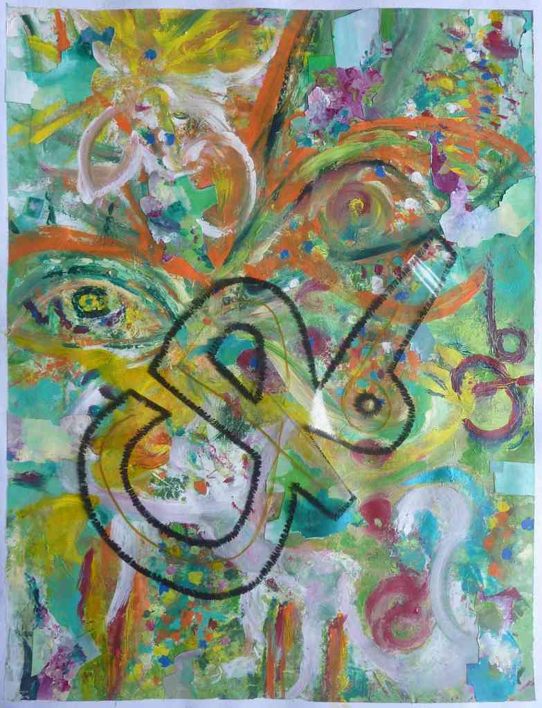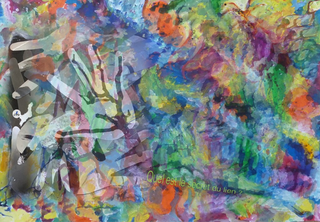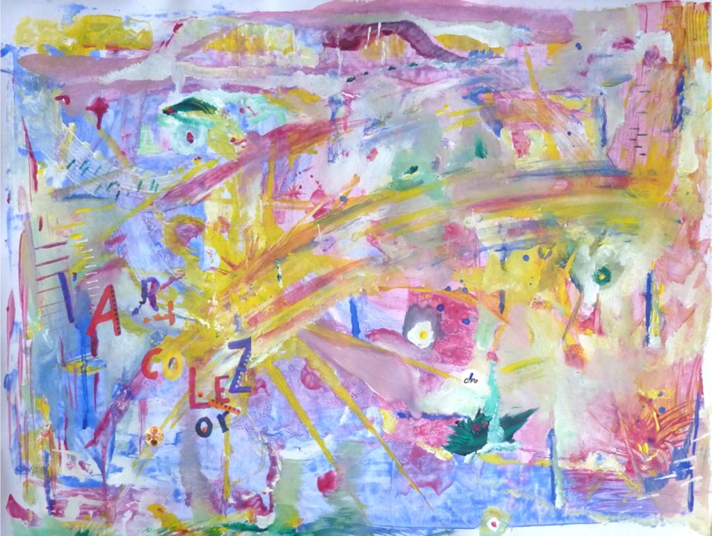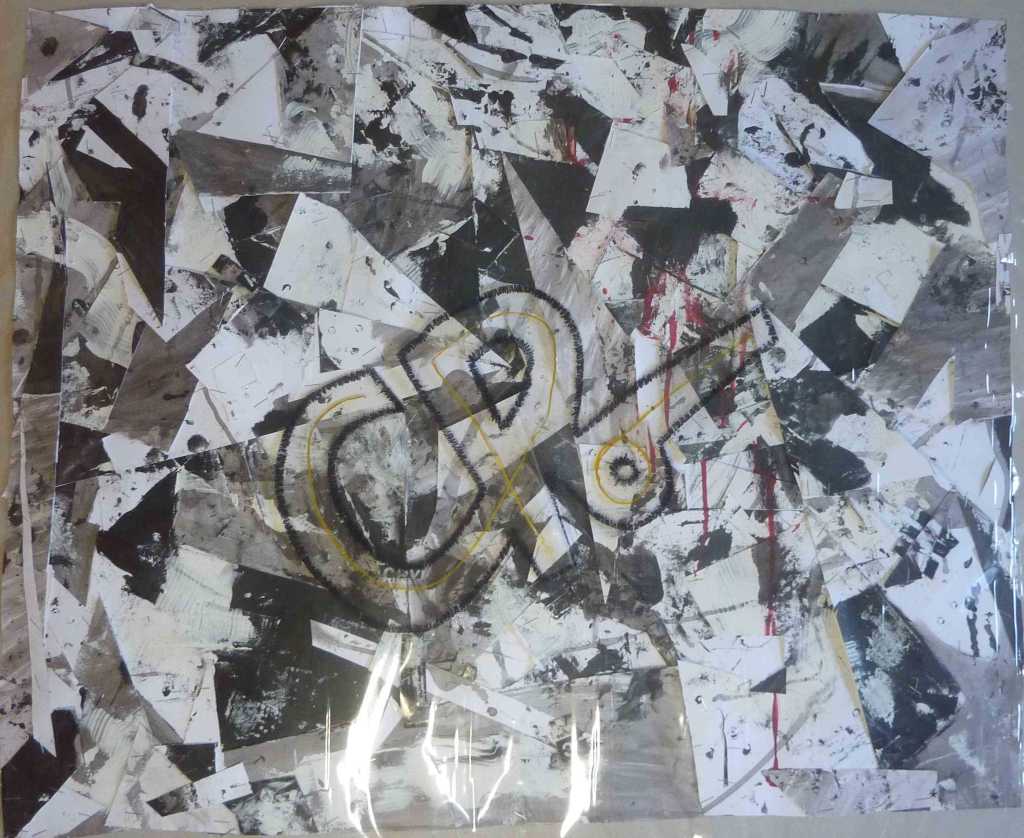 Art COlorieZÊtreRegardObscurClairPeinture acrylique / collages sur papier, format 50 x 65 cm