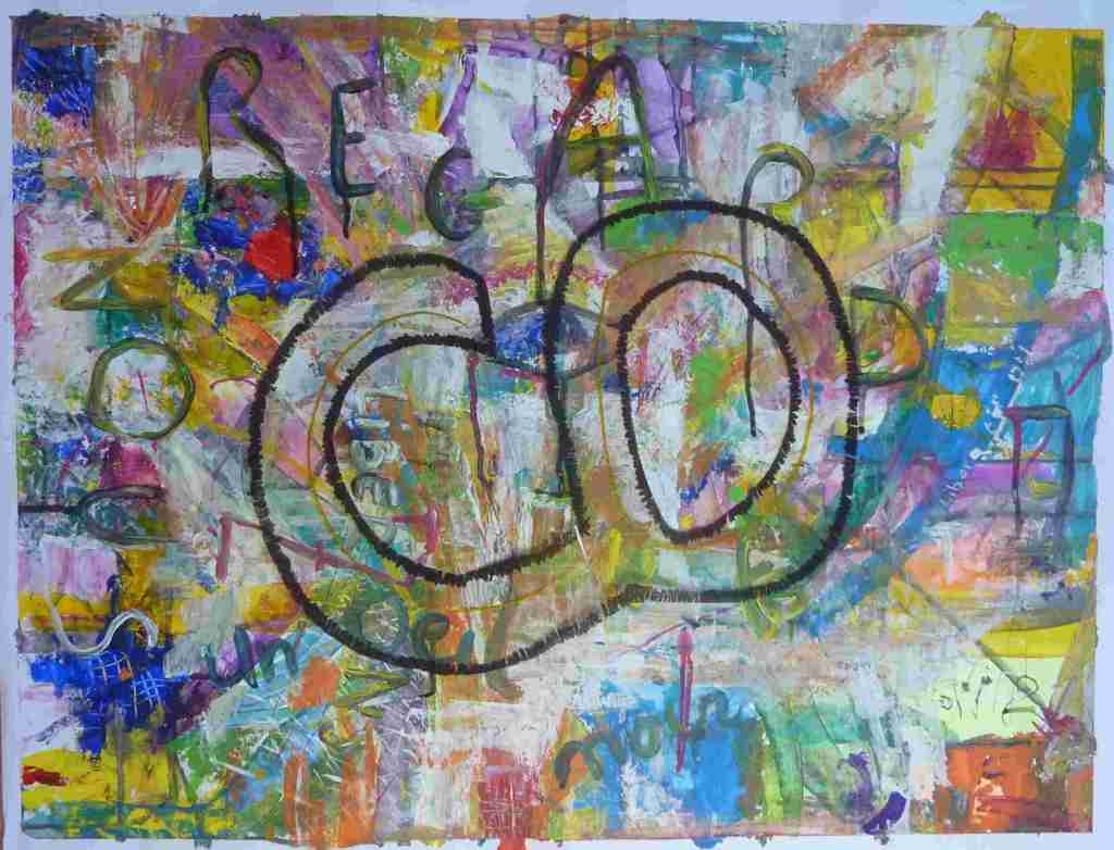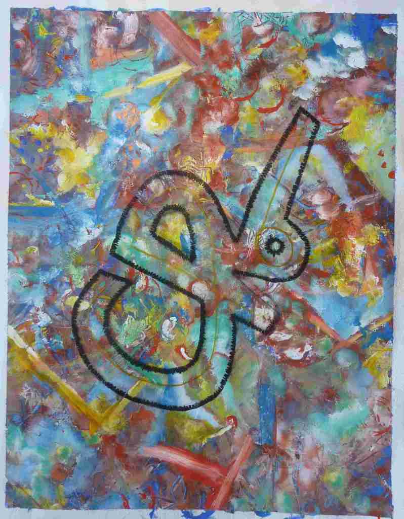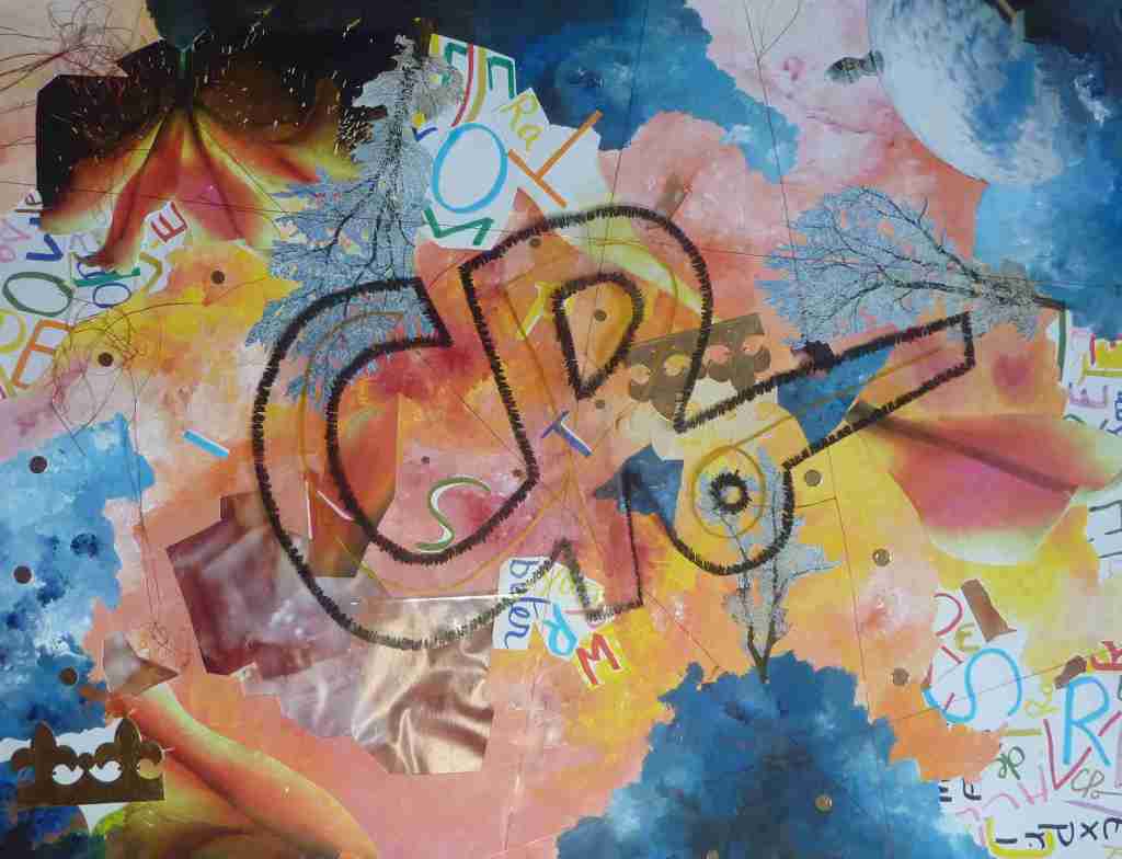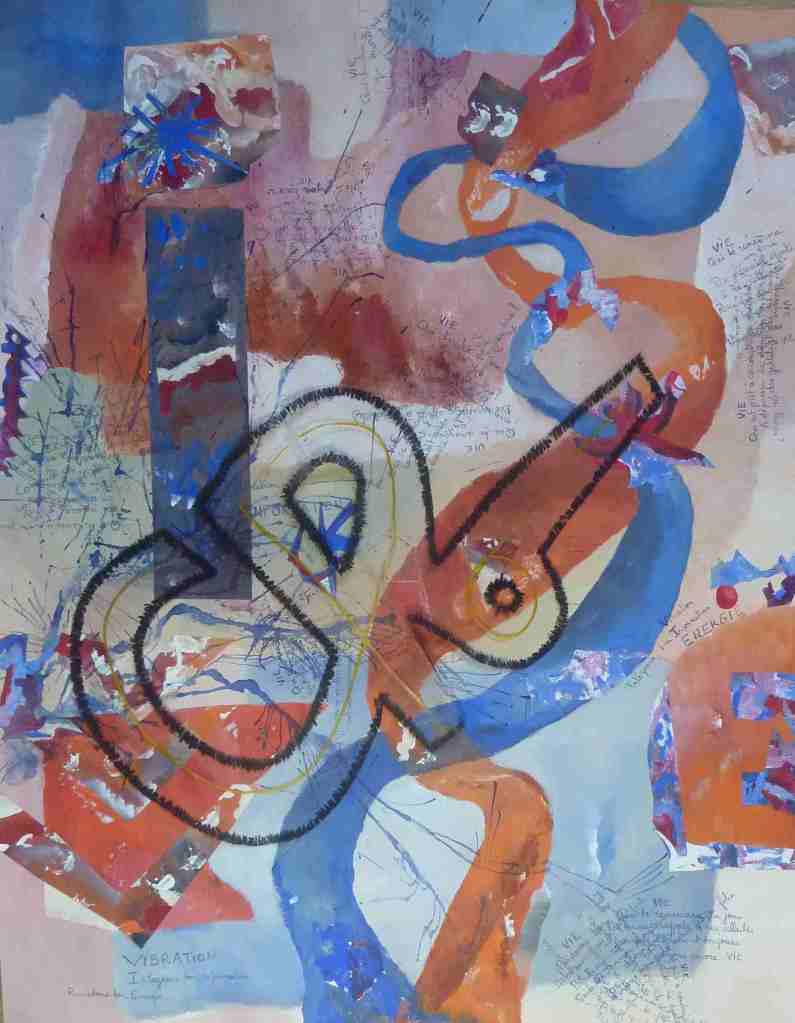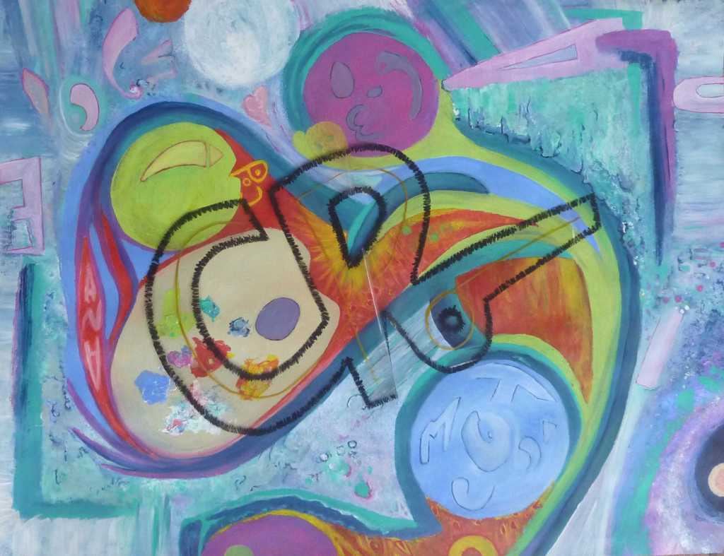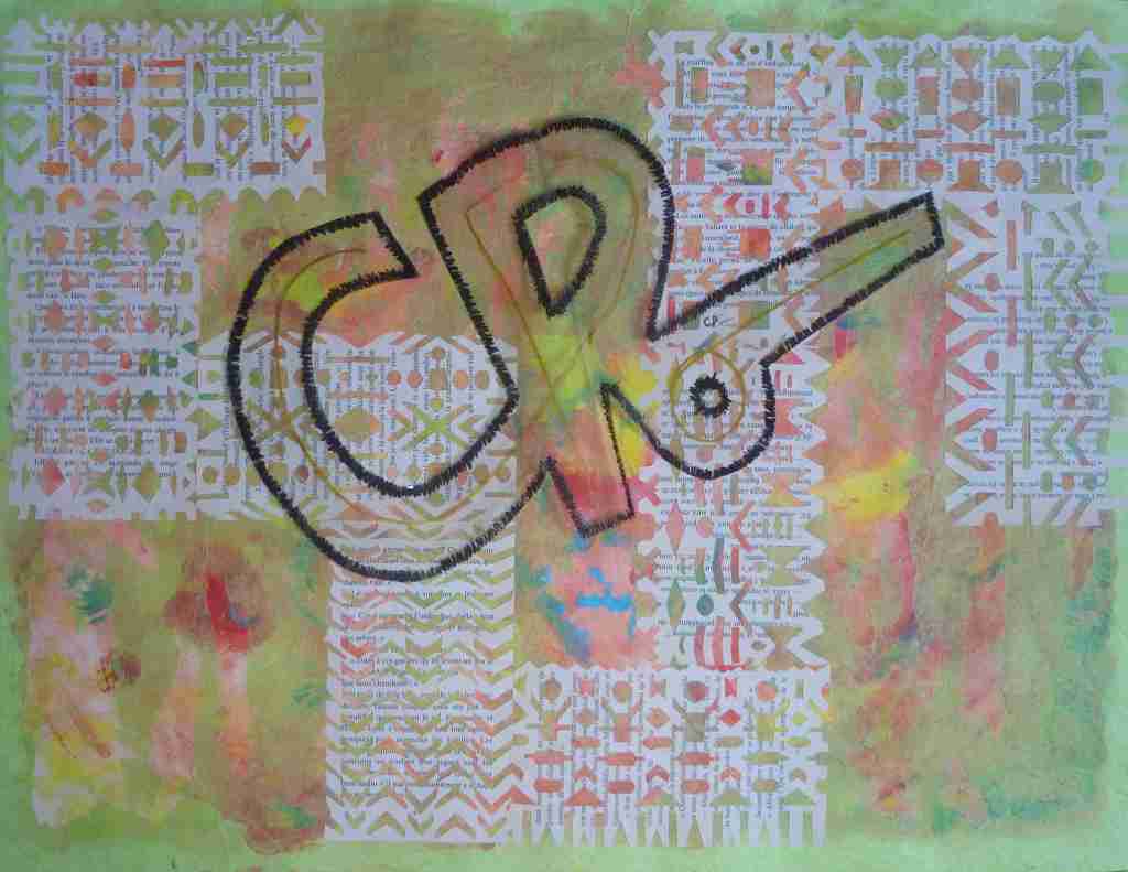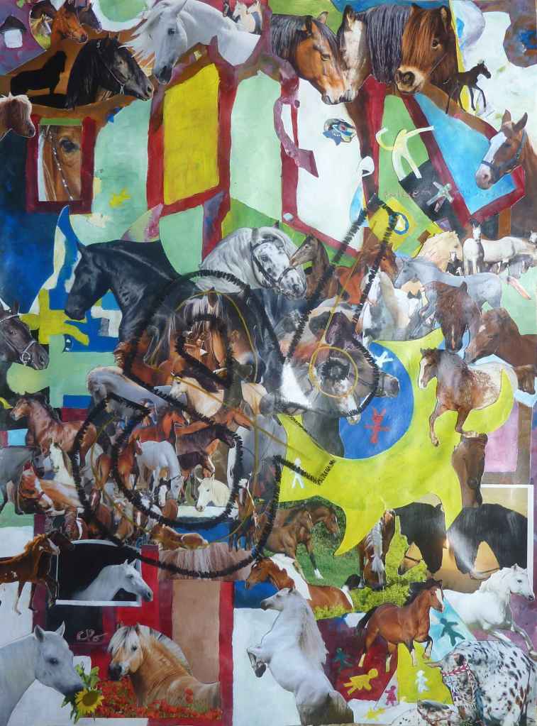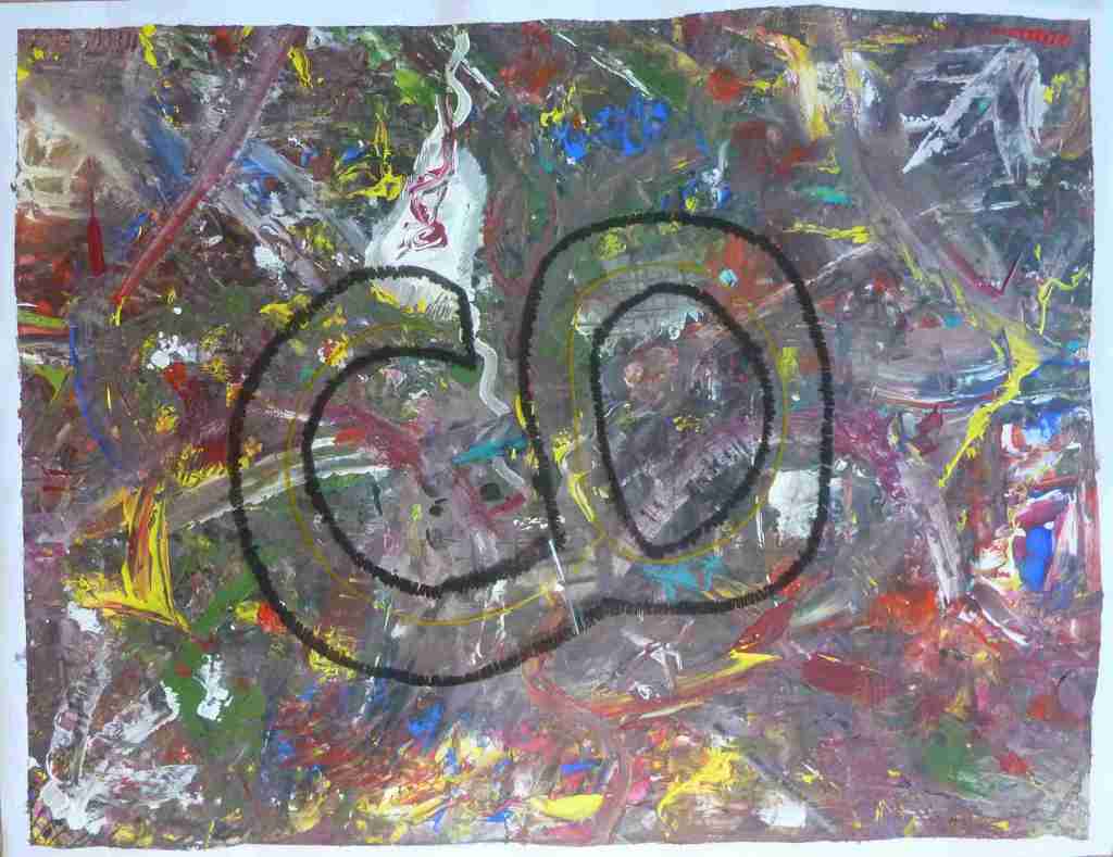 Art COlorieZÊtreRegardObscurClairPeinture acrylique / collages sur papier, format 50 x 65 cm
