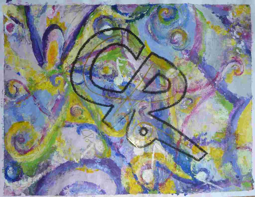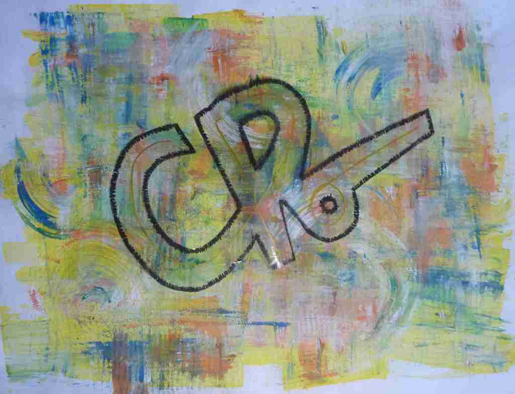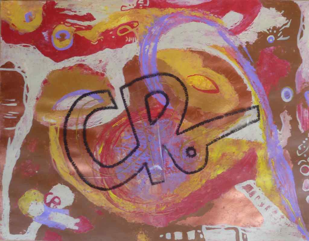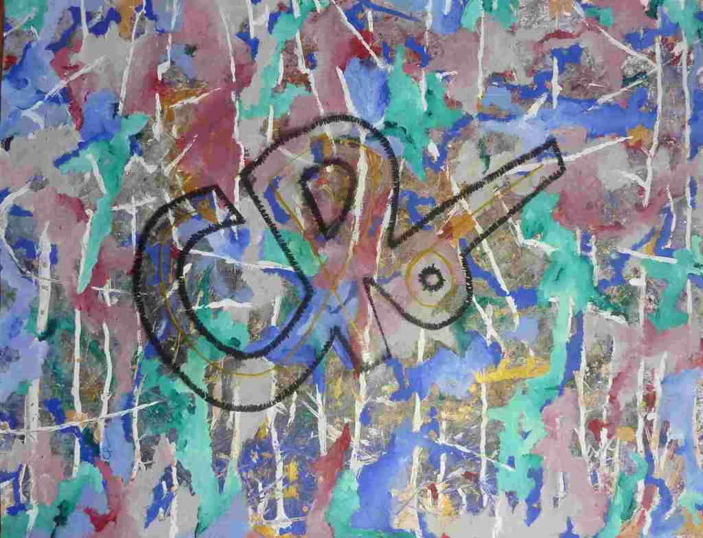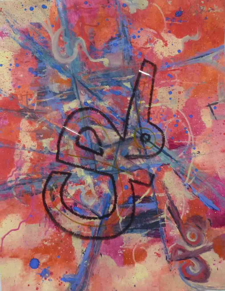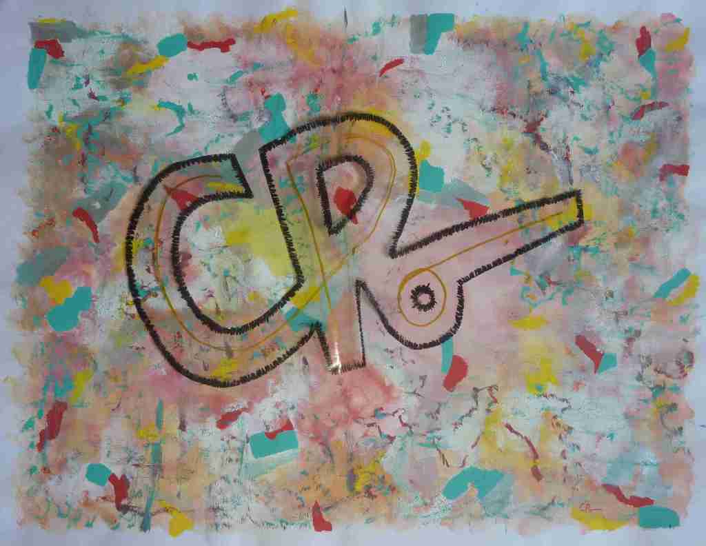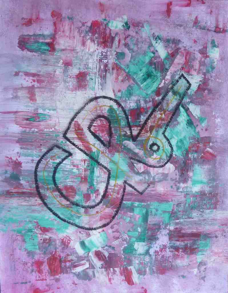 Art COlorieZÊtreRegardObscurClairPeinture acrylique / collages sur papier, format 50 x 65 cm