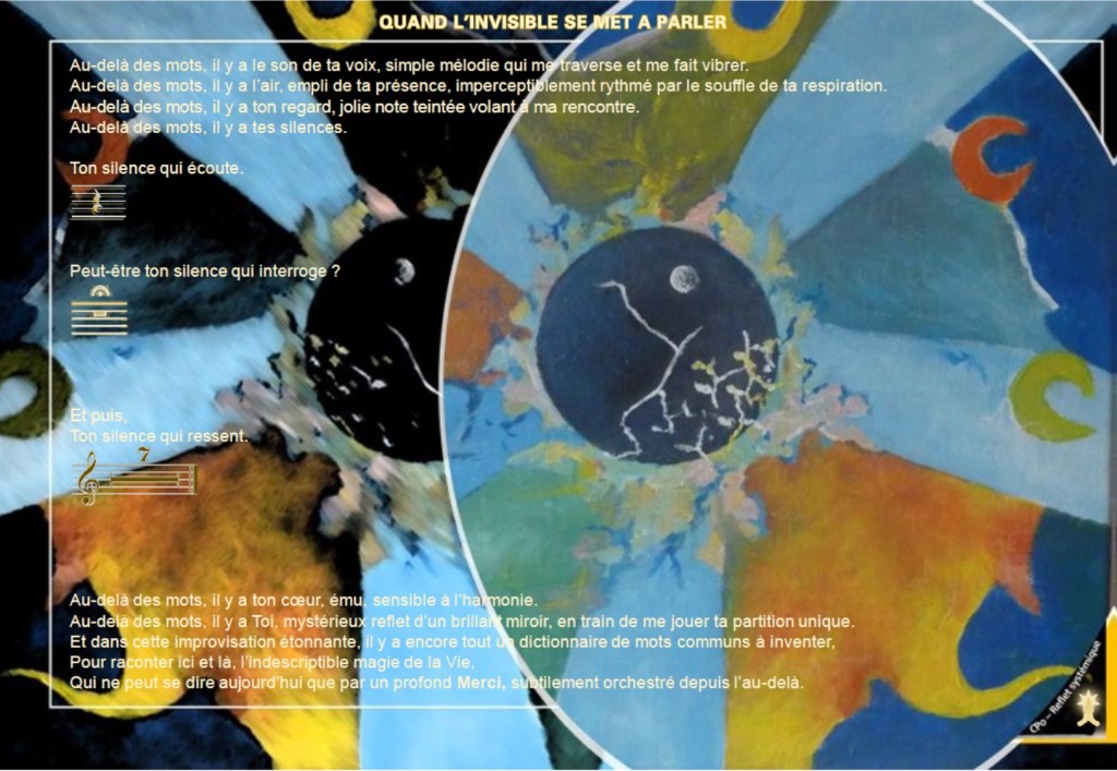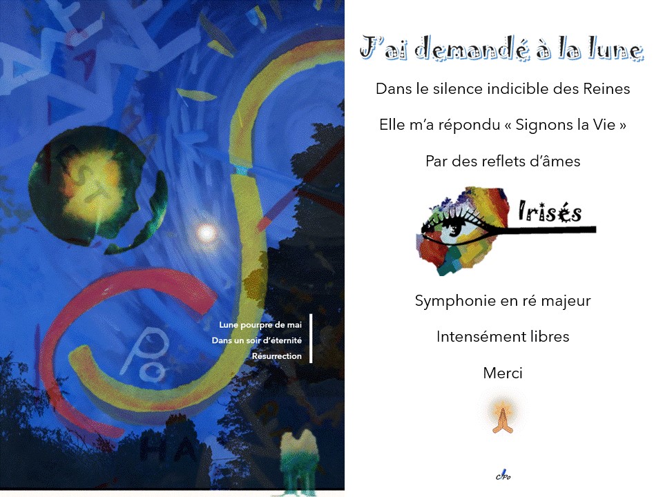 Quand l’invisible se met à parlerQuel est le secret du lien ?Fleur de vieHymne à la libertéGalaxie sourceJ’ai demandé à la luneL’ingénieur solitairePhénoménaleRendez-vous de l’odysséeVie plaisirPensive FloreImage numérique sur affiche, format A3