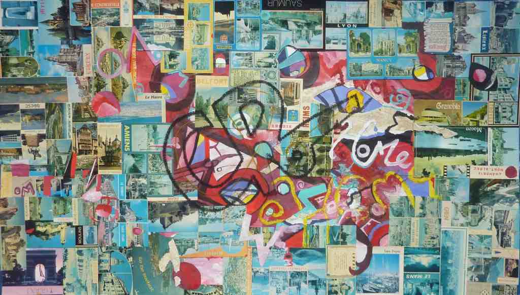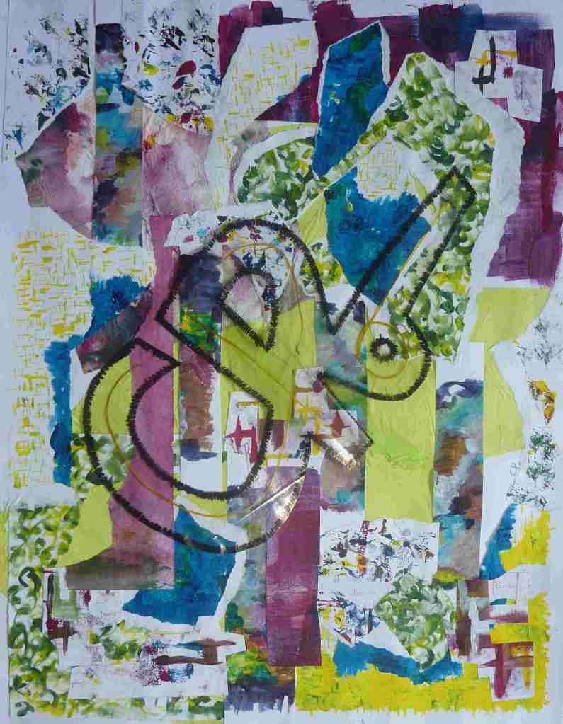 Organisation qualitéMaraîchère d’idéesTriste colèreRepose en paixRecoller les morceauxTressagePaysages graphiquesEspaceQue reste-t-il à comprendreVague à l’âmeComplexitéTacheItinéraire transfiguratifIndécisionMasculineLe magicienAbsolution divineLocomotricitéPeinture acrylique / collages sur papier, format 50 x 65 cm