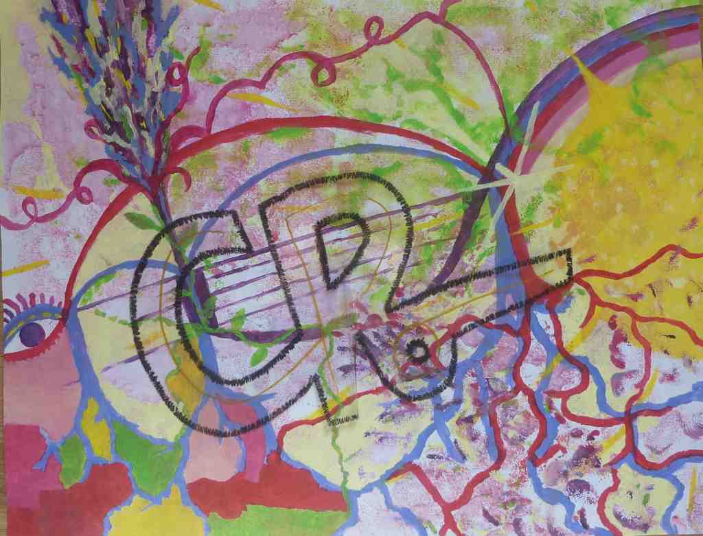 Chantier terrestreJe de constructionAutopoïèseDivine rencontreSainte CécileLa folie des masquesApaisement émotionnelLiaison terreArtisan de lumièreEmpreintesFantaisie gourmandeJe de dansePeinture acrylique / collages sur papier, format 50 x 65 cm