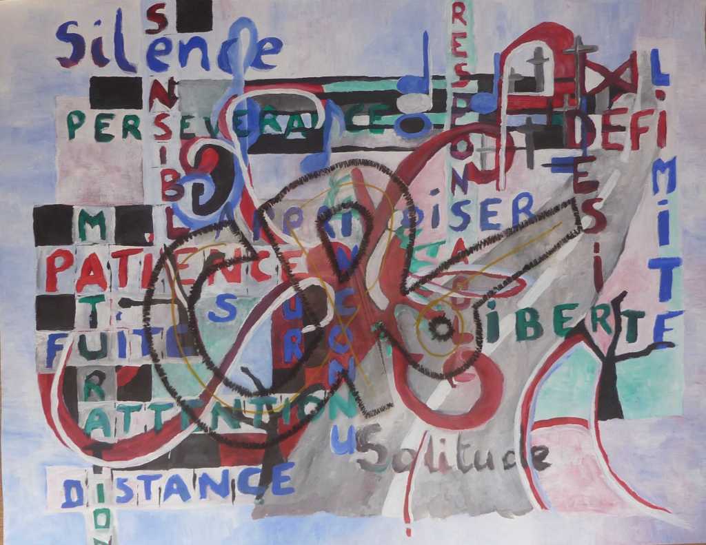 Les fenêtresPeinture acrylique / collages sur carton, format 50 x 50 cmGouvernance partagéeAquarelle danseLumière d’orientPeinture acrylique / collages sur papier, format 30×45 cmEnnuiPeinture acrylique sur papier, format A3Covid19RessourcementCrayons couleur aquarelle sur papier, format A3MultiversPeinture acrylique / collages sur toile, format 30 x 30 cm
