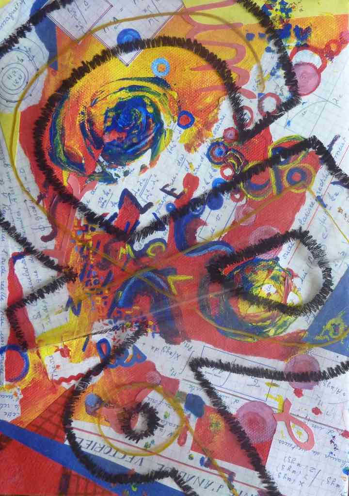 Puissance de la vaguePeinture huile et acrylique / collages sur toile, format 60 x 50 cmPas à pasMaintenantPhénoménalePeinture acrylique sur toile ou recyclage cartons assemblés, format 60 x 60 cmSplashPeinture acrylique sur tissu mural, format 85 x 90 cm@ homePeinture acrylique / collages sur papier, format 105 x 60 cmSynthèsePeinture acrylique sur toile, format 92 x 73 cm